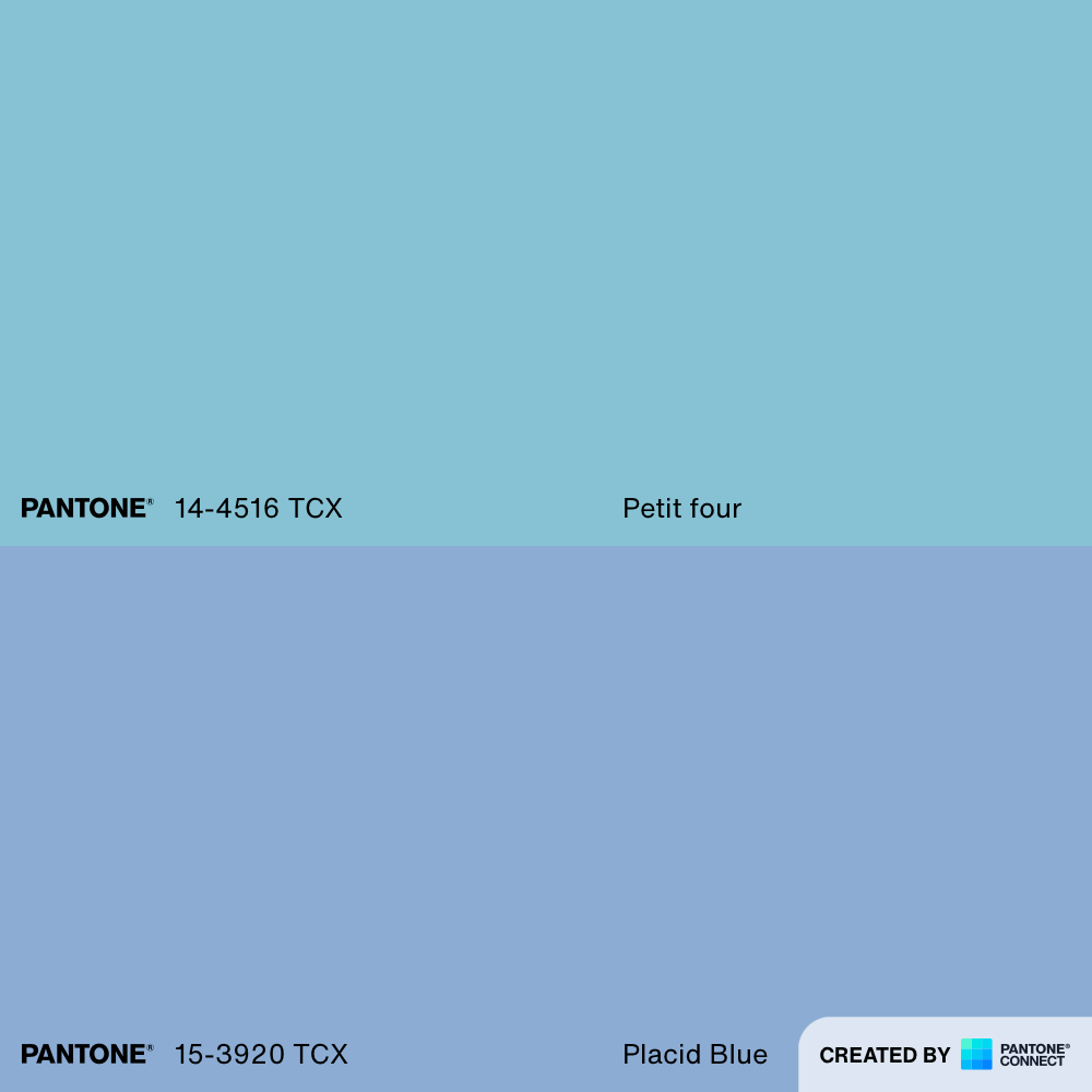 Here are some examples from the Colortime palettes. They are more subtle comparisons than the examples above but still evident and important when making design decisions. Let’s look at Petit Four from the Sunrise palette. It is much brighter and truer than Placide Blue Lake from the same palette. Of course you could pull another shade that is even truer than Petit Four or more muted than Placid Blue Lake. It is all a matter of comparison.